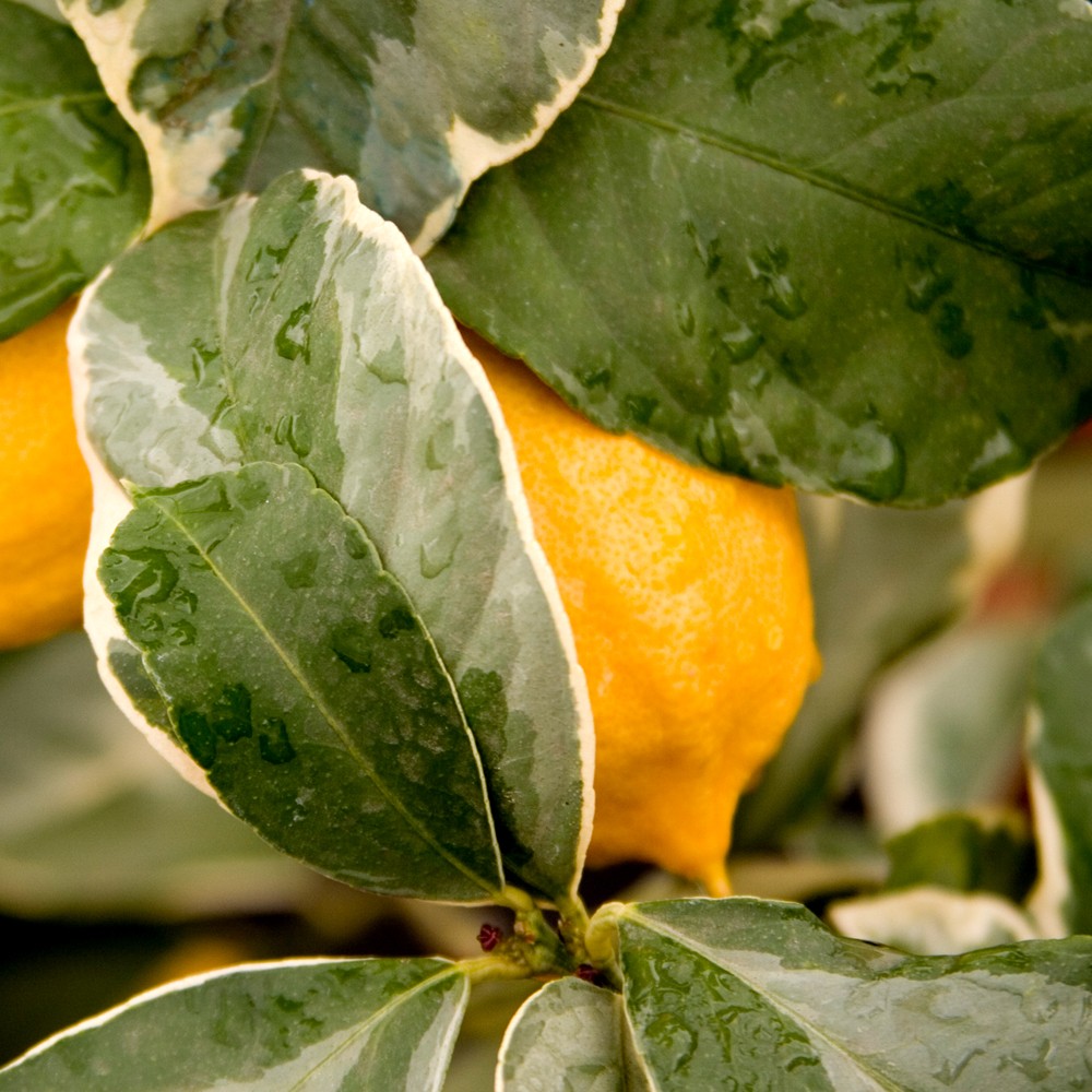 Il limone a foglia variegata è molto apprezzato per il suo aspetto ornamentale, forte e vigoroso dona frutti profumati e succosi.