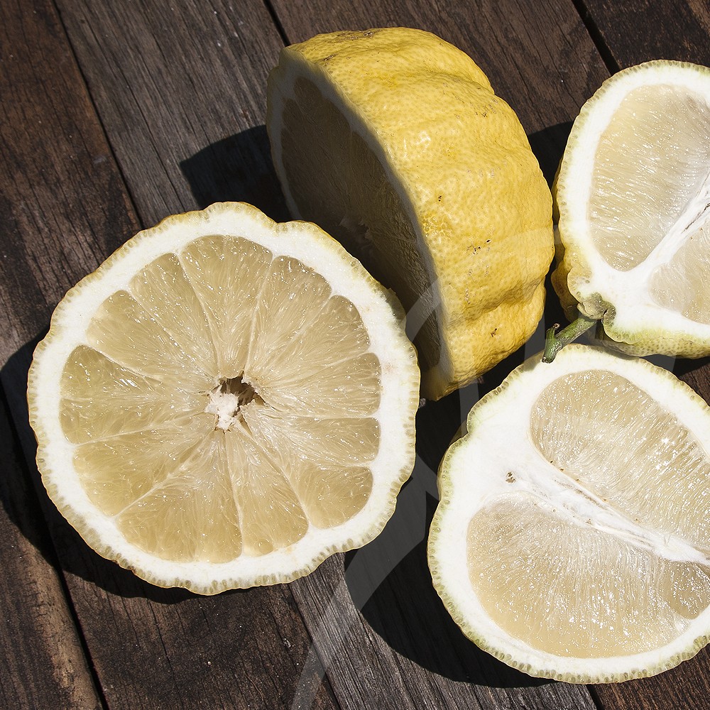 I frutti di grande dimensione sono costoluti, di forma oblunga o rotondeggiante e presentano un umbone depresso all’apice. La buccia è spessa e molto aromatica di colore giallo a maturazione, l’albedo è di dimensioni contenute, la polpa molto succosa e priva di semi ha un piacevole sapore acido che ricorda il limone con una sfumatura amara a fine degustazione.