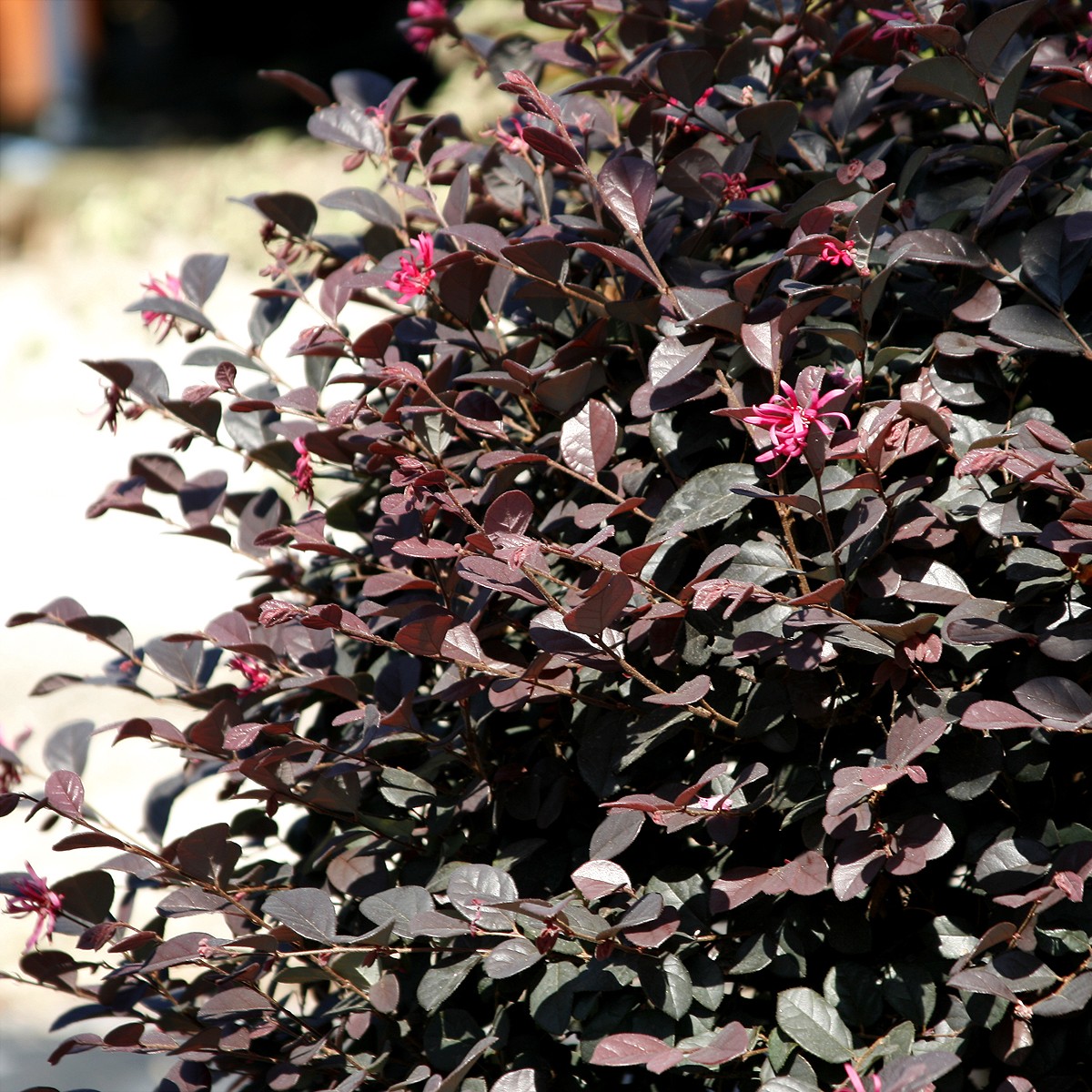 Il Loropetalum chinense è un arbusto sempreverde originario dell’Asia, si presenta con un piccolo arbusto o albero dal portamento allargato e globoso. Le foglie di forma ovale hanno una particolare colorazione molto ornamentale bronzeo-rosse che diventa verde oliva o bordeaux alla maturità.